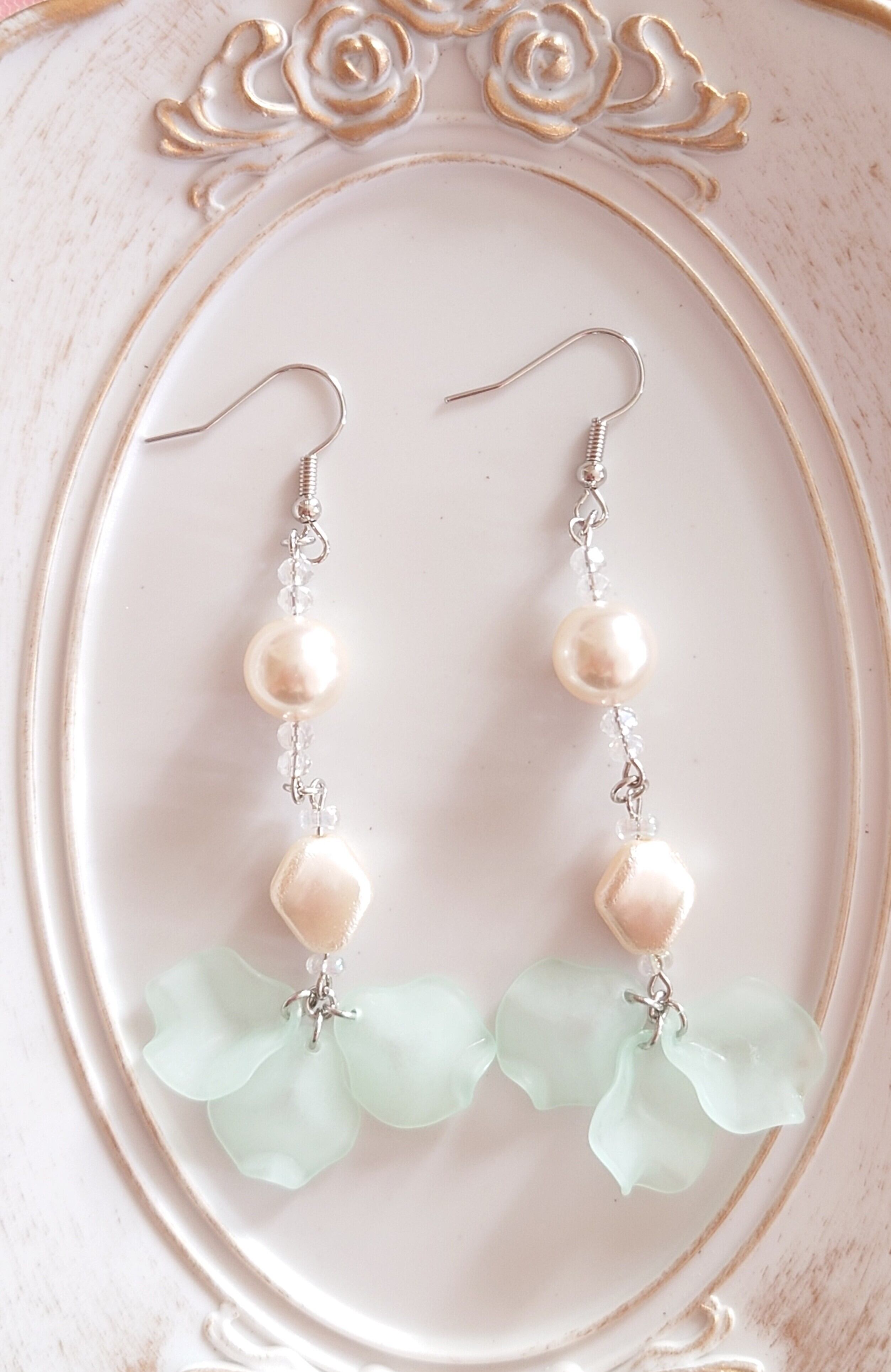 ※ハンドメイドアクセサリーなので、金具の丸め方等、誤差や形の違いなどあります。至らぬ点もあるかと思いますが、それも持ち味と楽しんでいただけますと幸いです♡