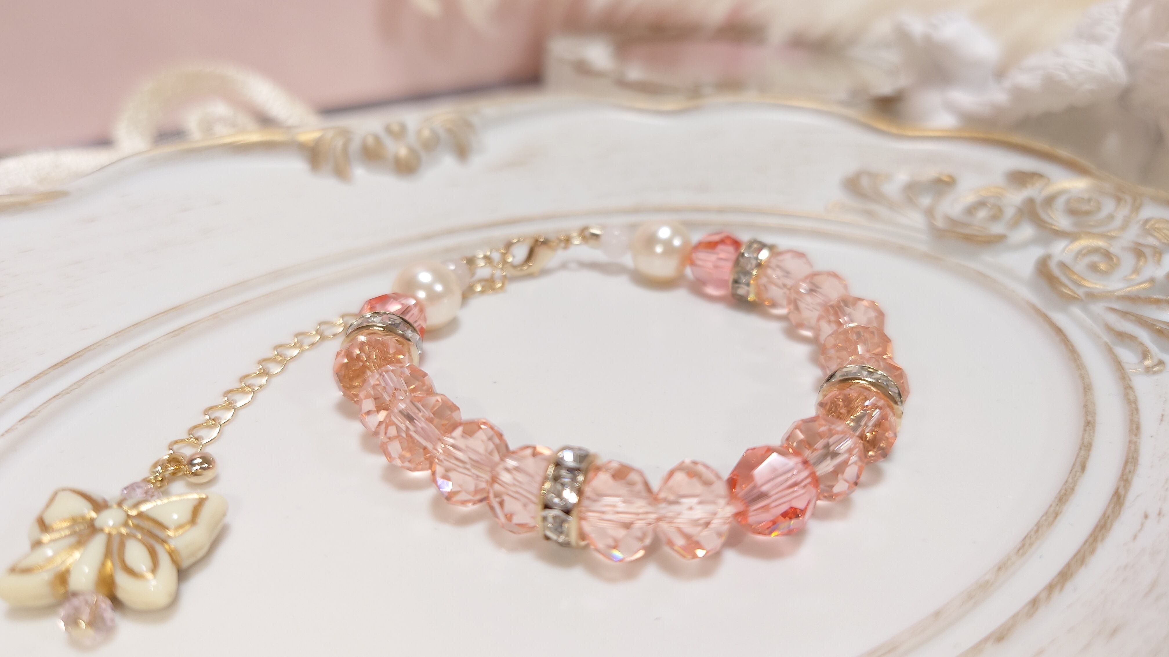 ローズピーチビーズブレス(金属アレルギー非対応)